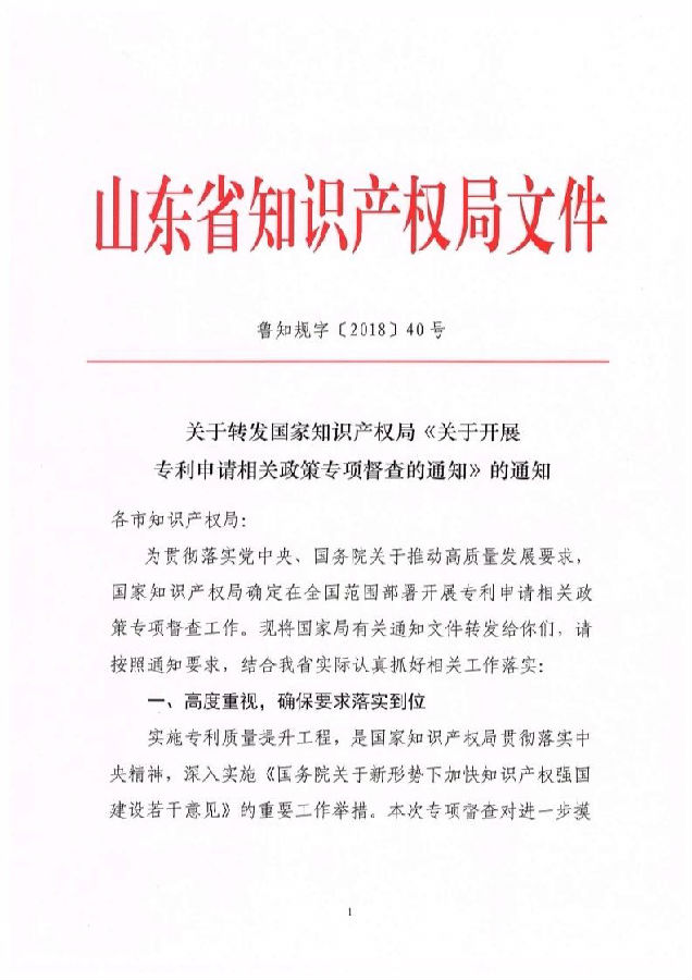 國知局:開展「專利申請相關(guān)政策」專項督查(通知全文)