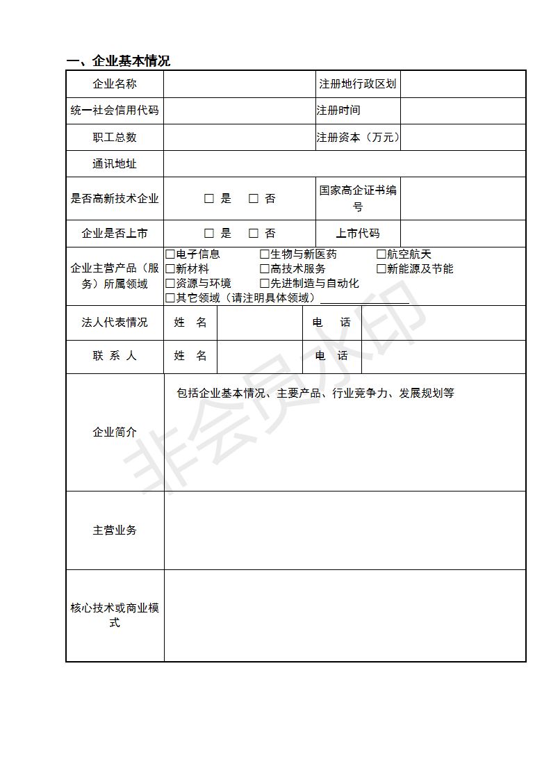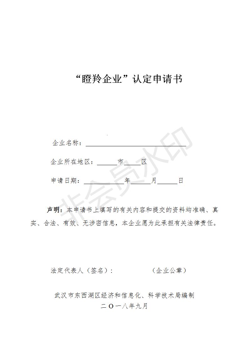 1. 臨空港開發(fā)區(qū)(東西湖區(qū))瞪羚企業(yè)認定申請書;