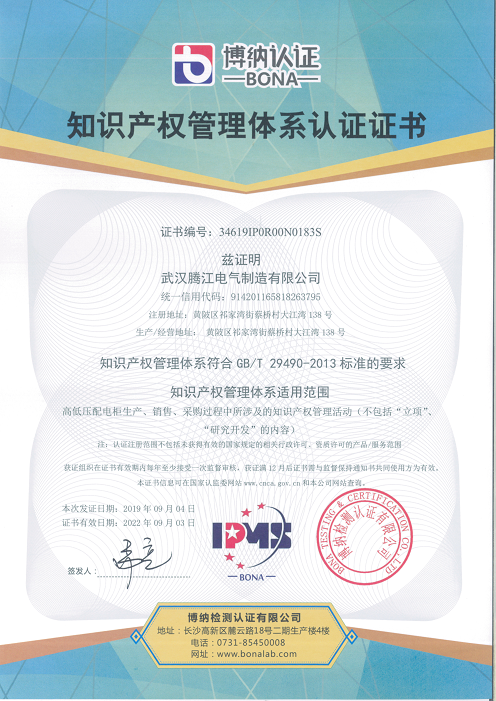 祝賀丨武漢騰江電氣制造有限公司獲得國家級知識產(chǎn)權(quán)貫標(biāo)認(rèn)證!