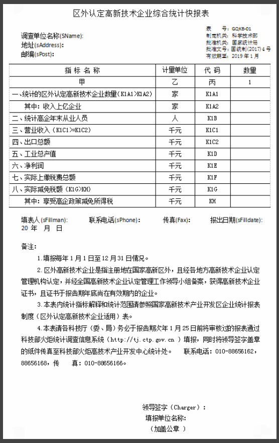 國家科技部火炬統(tǒng)計報表填寫
