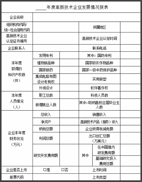 高新年報發(fā)展情況報表填寫