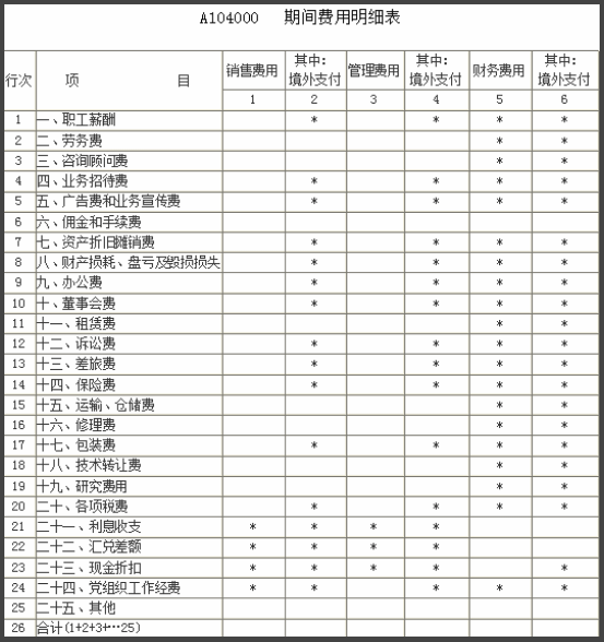 (1)A104000——期間費用明細表