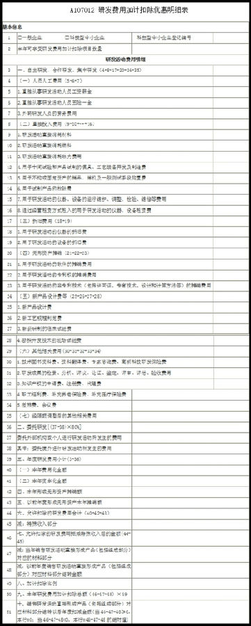 (2)A107012——研發(fā)費用加計扣除優(yōu)惠明細表